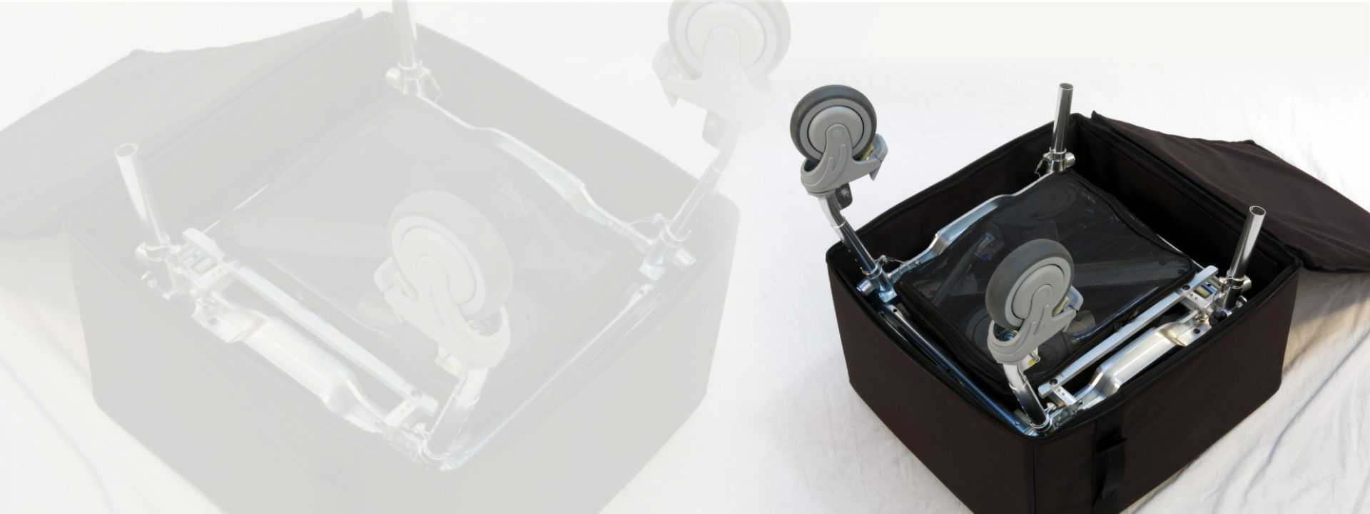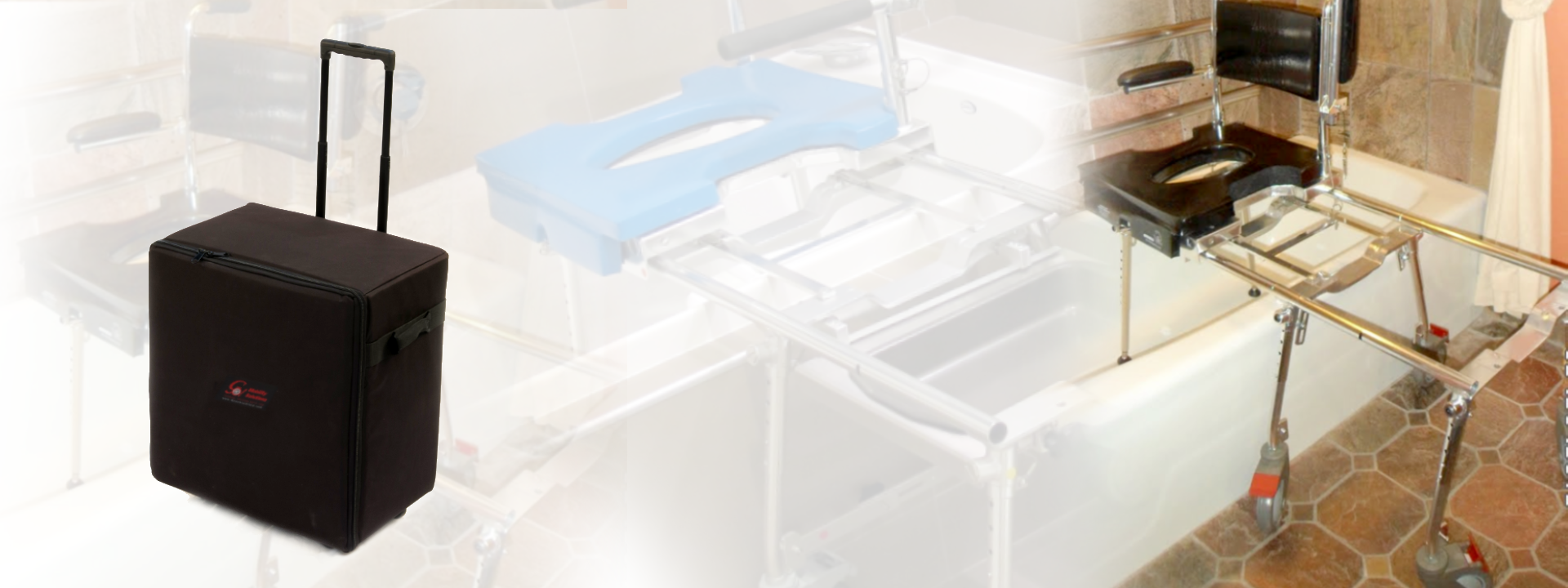 The days of panicking when you’ve arrived at a hotel only to discover that they’ve given away your reserved roll-in shower are over. Having a GO-Anywhere Commode Shower and Tub Chair is your “insurance policy”. Simply attach the tub section to the rolling shower wheelchair frame and slide over the tub wall (or over a curb or even up or down a step) and into the tub. If a roll-in shower is available, then great; leave the tub section in the travel bag and just roll straight in.