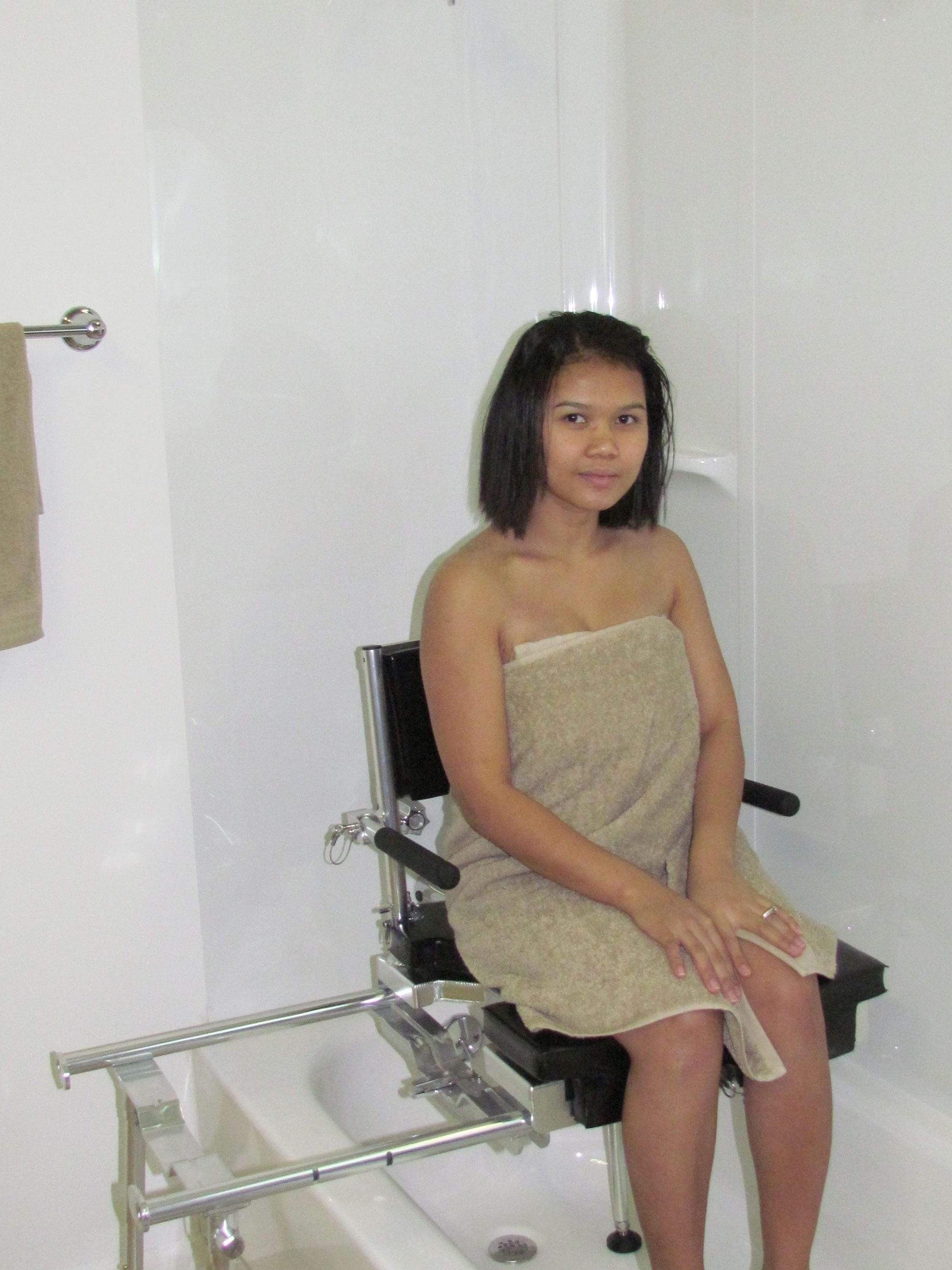 The GO-Anywhere portable Stationary Tub ‘n Shower Chair™ provides a practical and convenient means for elderly and/or disabled individuals to shower safely wherever and whenever they want. It may be set-up in virtually any bathtub, enabling its user to safely and easily slide into the bathtub and into a position beneath a shower head.